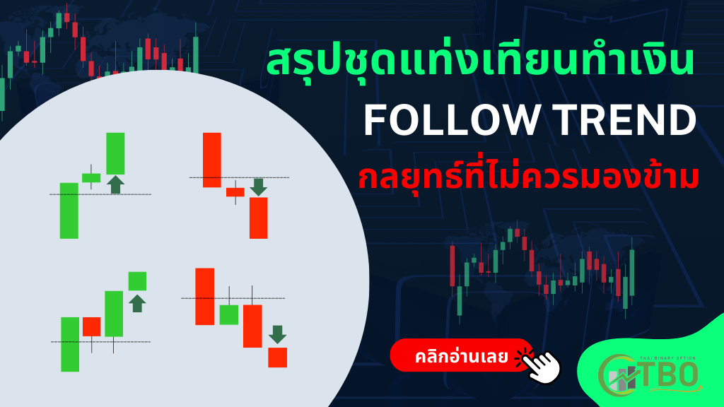 Thaibinaryoption.com ย่อให้ ชุดแท่งเทียนทำเงิน Follow Trend : ที่พบบ่อยมี 2 รูปแบบ ได้แก่ ชุดแท่งเทียนพุ่งย่อเล็ก และชุดแท่งเทียนพักย่อใหญ่ ข้อดี: มีรูปแบบที่ชัดเจน เข้าใจง่าย ทำกำไรได้ทุกตลาด ใช้ความรู้แค่แนวรับแนวต้าน ข้อควรระวัง: มีความแม่นยำสูงเมื่อเกิดการทะลุแนวรับแนวต้านของกรอบราคาเท่านั้น เทคนิคทำกำไร: เลือกเทรดบริเวณแนวรับแนวต้านที่แข็งแรงจะพบชุดแท่งเทียน Follow Trend ได้ง่าย แนะนำชุดแท่งเทียน Follow Trend แท่งเทียน Follow Trend ที่พบบ่อย รูปแบบกราฟอ่านง่าย และทำเงินได้จริง มี 2 รูปแบบ ได้แก่ ชุดแท่งเทียนพุ่งย่อเล็ก และชุดแท่งเทียนพักย่อใหญ่ มีความแม่นยำสูงในบริเวณแนวรับแนวต้าน ชุดแท่งเทียน Follow Trend คืออะไร กราฟแท่งเทียนเปล่า: เป็นชุดแท่งเทียนที่มีรูปแบบชัดเจนใช้ทำกำไรเมื่อเกิดการทะลุแนวรับแนวต้านในกรอบราคา สัญญาณบอกการ Follow Trend : เป็นแท่งเทียนที่เป็นสัญญาณบอกว่า Trend ของแท่งเทียนถัดไปจะไม่มีการเปลี่ยน Trend ยังอยู่ใน […]